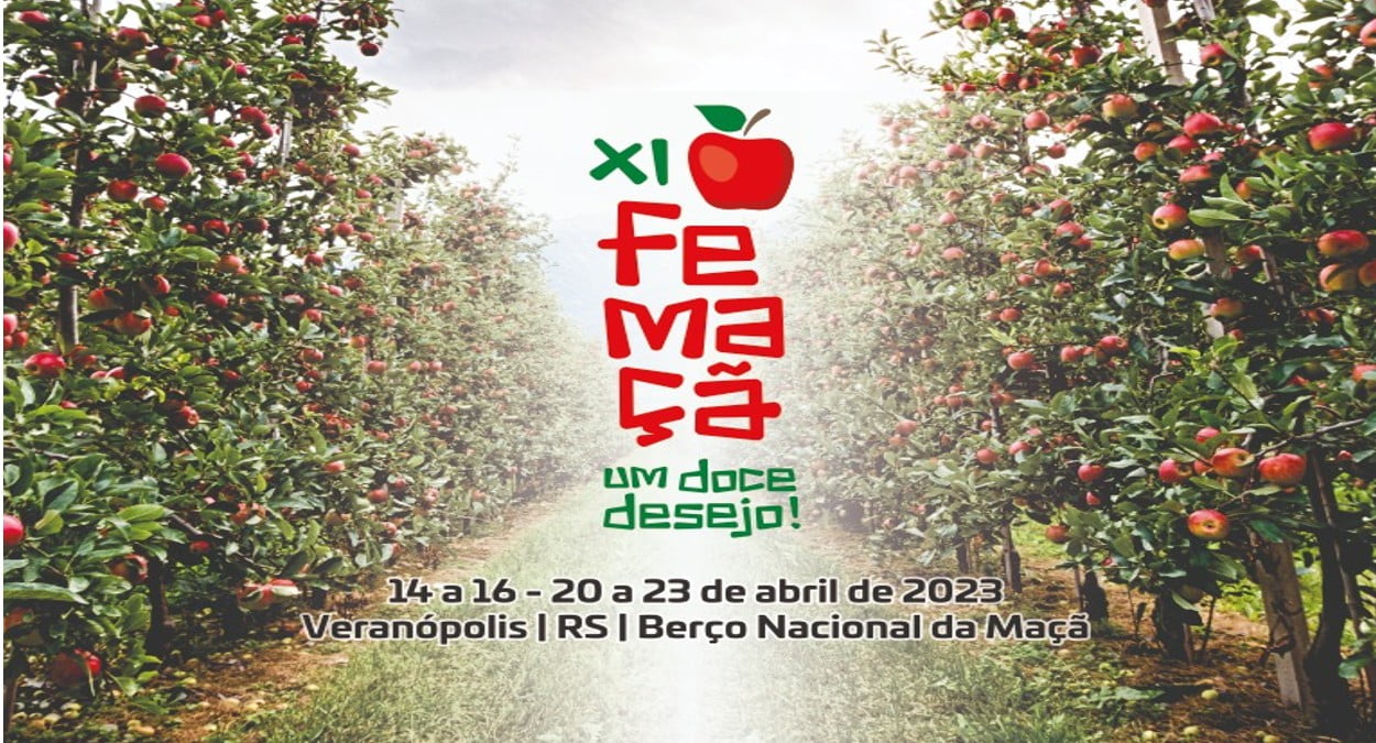 A cidade gaúcha de Veranópolis divulgou as datas da Festa da Maçã 2023, a XI Femaçã, que será realizada no período de 14 a 16 e de 20 a 23 de abril de 2023, no Parque de Exposições José Bin, da bela cidade gaúcha.